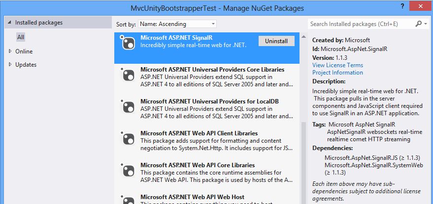 UPDATED 2014.04.12: latest version of SignalR used and all other packages.