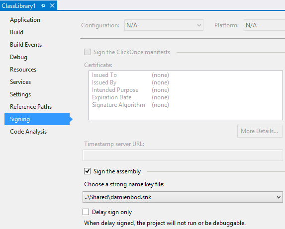 You can also sign assemblies, if you don’t have the source code using the Ildasm.exe tool. You should only do this if you don’t have the source code. You should not use this approach if you have the source code as this borders on a dirty hack…