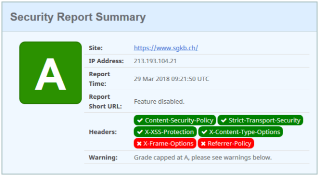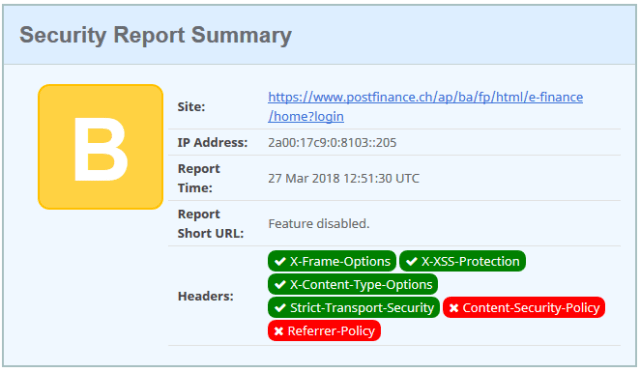 2. […] Comparing the HTTPS Security Headers of Swiss banks (Damien Bowden) […]
