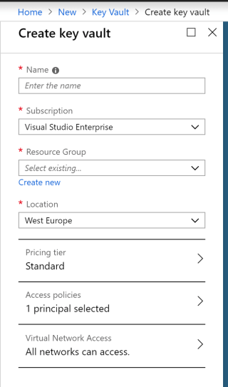 You can create an Azure Key Vault by following the Microsoft documentation here: