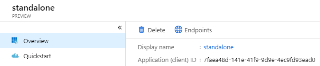 Wait a bit, and the AAD Application registration will be created. Save the Application (client) ID somewhere as this is required in the code.