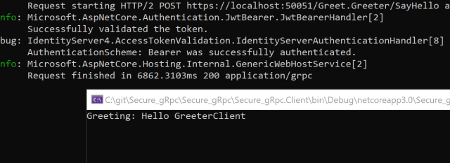 This article shows how a gRPC service could implement OAuth2 security using IdentityServer4 as the token service.