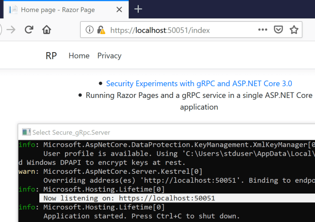 […] Running Razor Pages and a gRPC service in a single ASP.NET Core application (Damien Bowden) […]
