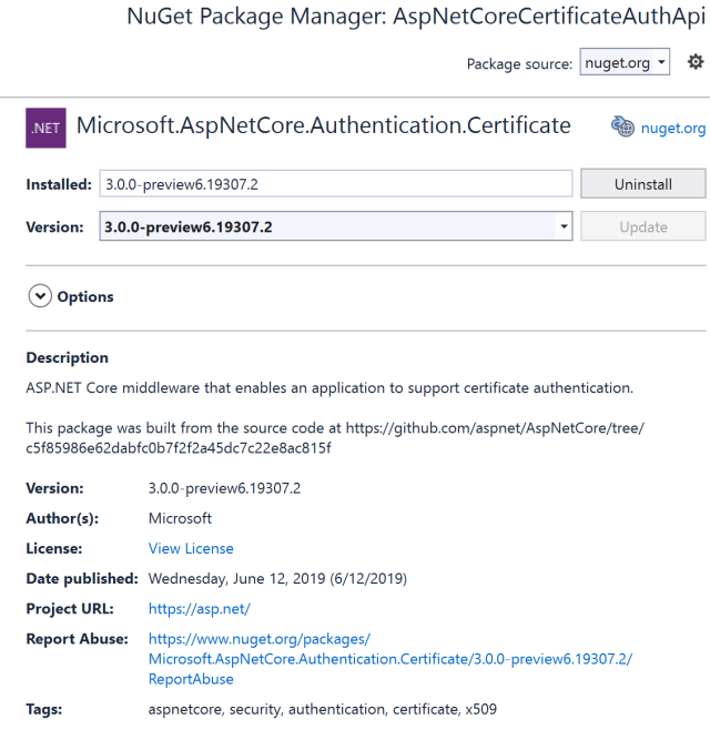 <PackageReference Include="Microsoft.AspNetCore.Authentication.Certificate"