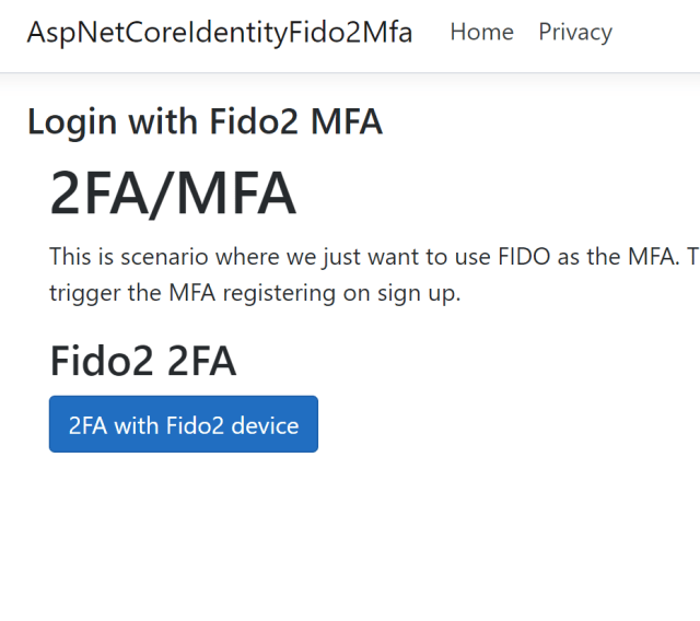 Code: https://github.com/damienbod/AspNetCoreIdentityFido2Mfa