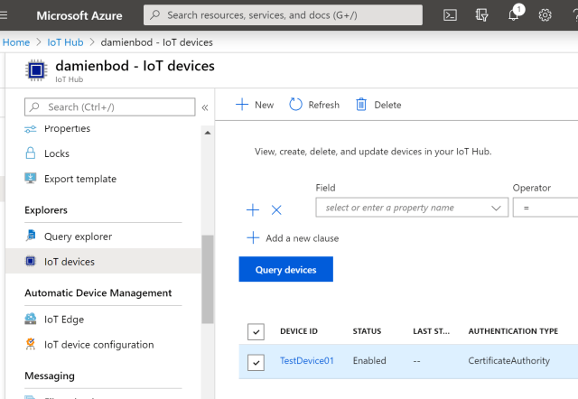We use the certificates created from above. The Device ID of the certificate and the device setup on Azure need to match.