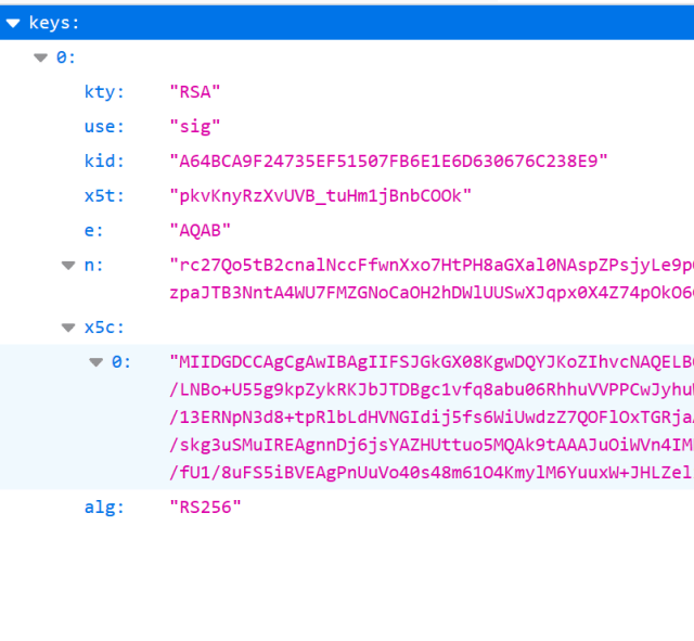 using the jwks endpoint, you can view the certificate public details used for validation: