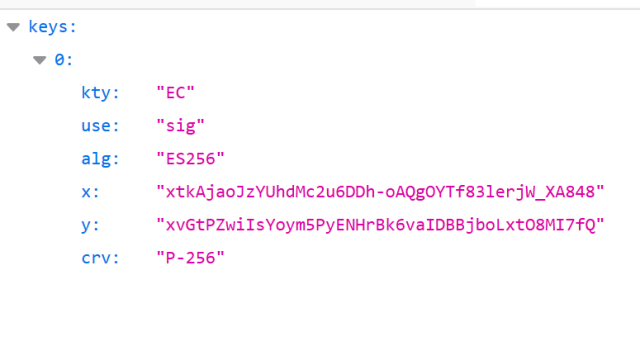 The jwks endpoint uses an EC certificate.