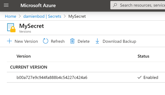 $myKeyVaultSecret =  az keyvault secret show --name "MySecret" --vault-name "damienbod"