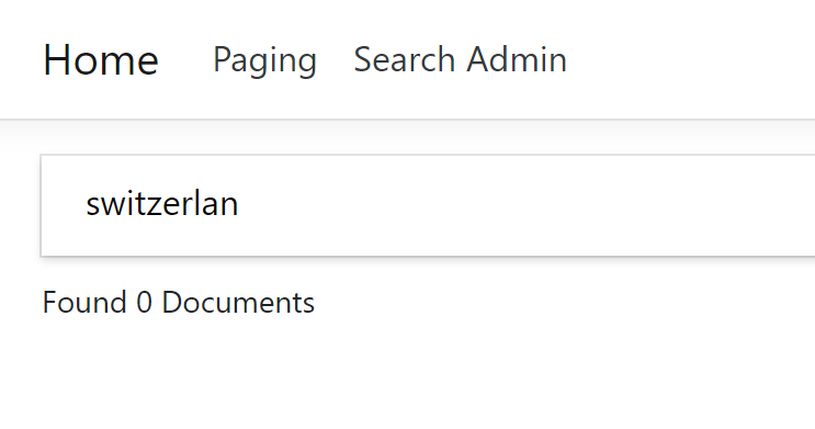The search can be used by entering a text and clicking the search icon. The results and paging are returned as defined. Ten results were found for “Switzerland” using a full word match.