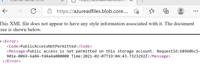 It is important that public access is disabled. This is per default enabled. Upload a file to the container and get the URL for this blob. Try to access the blob using a different browser with unauthorized access. A forbidden response must be returned.