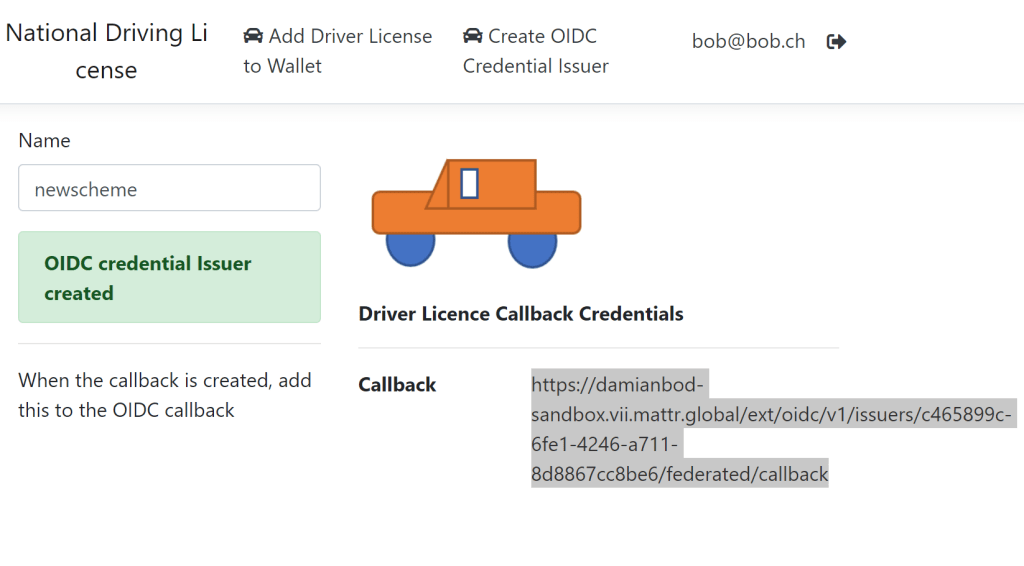 After creating a new MATTR OIDC credential issuer, the callback URL needs to be added to the Open ID connect code flow client used for the digital wallet sign in.