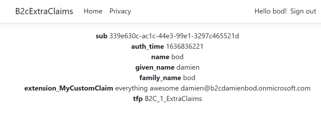 1. […] Add extra claims to an Azure B2C user flow using API connectors and ASP.NET Core (Damien Bowden) […]