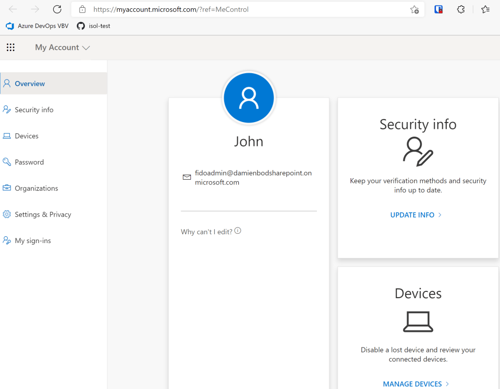 Now that the Azure AD tenant can use FIDO2 authentication, an account can be setup for this. If you implement this for a company’s tenant, you would role this out using scripts and automate the process. You can sign in to your account at Microsofts myaccount website and use the security info menu to configure the Feitian FIDO2 keys.