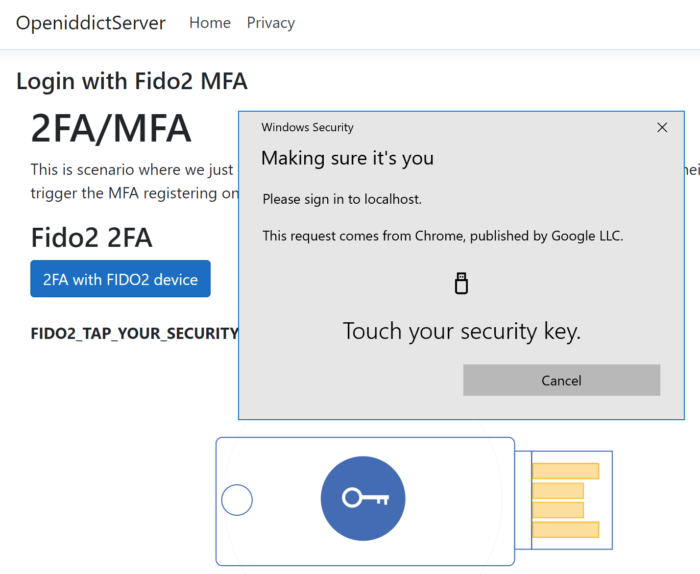 Add Fido2 MFA to an OpenIddict identity provider using ASP.NET Core Identity