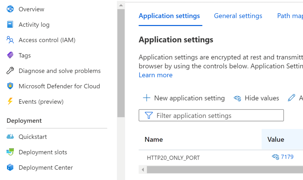 // port must match the Azure App Service setup HTTP20_ONLY_PORT