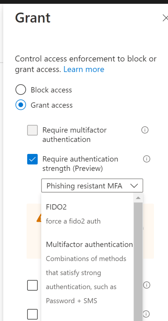 Using this policy, a user must authentication with one of the phishing resistant methods.