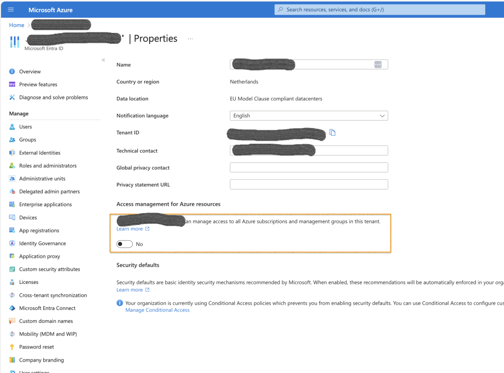 Disable on the tenant in the “your-tenant” | Overview | Properties