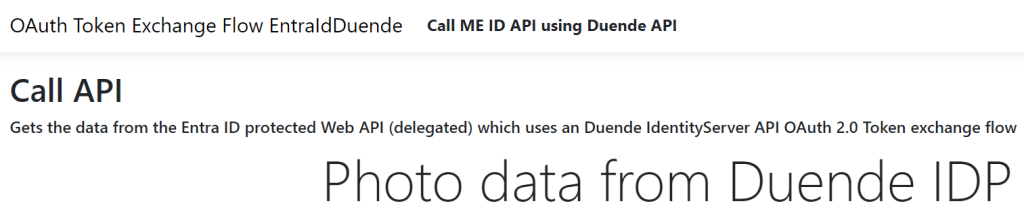 When all four applications are started, the data from the Duende protected API is returned to the Razor Page application which uses Microsoft Entra ID to authenticate.