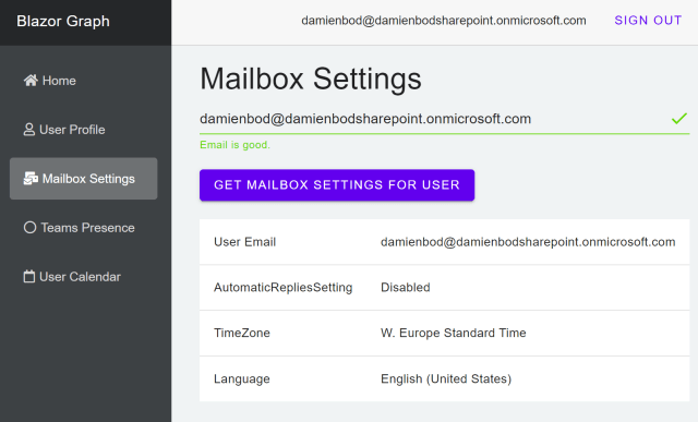 This article shows how to use Microsoft Graph with delegated permissions in a Blazor WASM ASP.NET Core hosted application. The application uses Microsoft.Identity.Web and the BFF architecture to authenticate against Azure AD. All security logic is implemented in the trusted backend. Microsoft Graph is used to access mailbox settings, teams presence and a users calendar. […]